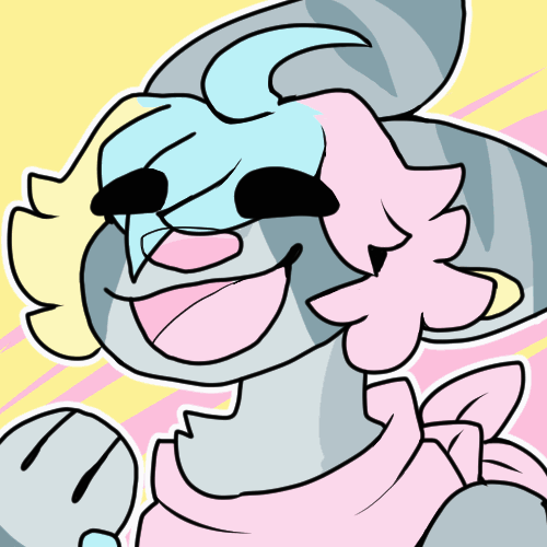 Non-animated, icon-sized drawings of a character from shoulders up. Backgrounds can be a gradient, pride flags, a single color, or a simple background.